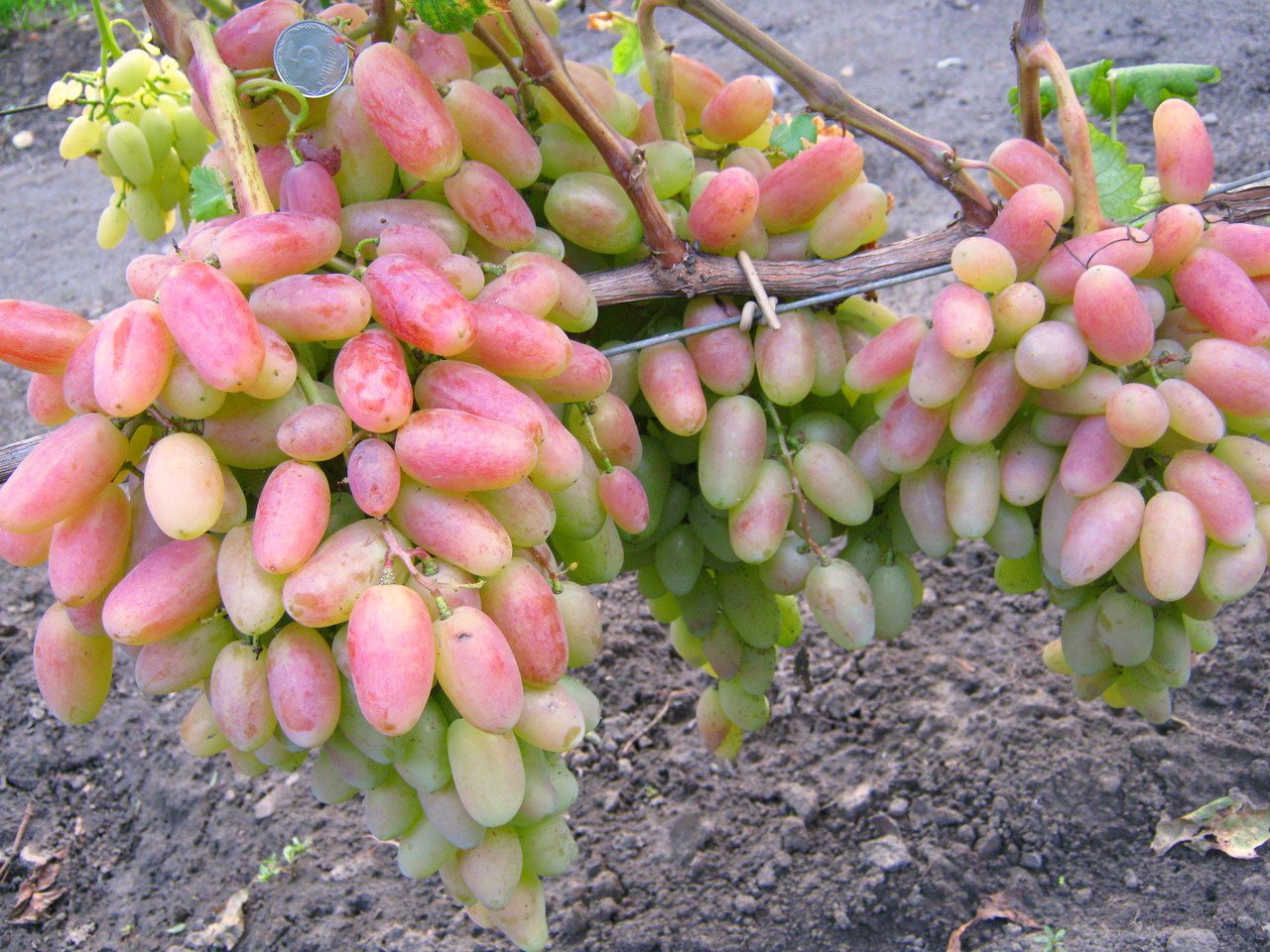 Les grappes sont grandes, coniques, rarement cylindriques. La taille maximale des fruits ovales est de 3 à 4 cm avec un diamètre de 25 à 45 mm. Le poids d'une baie varie de 12 à 20 g. La couleur peut être jaune-rose ou rubis. Sous la peau dense se trouve un noyau charnu et juteux. Le goût est très doux, sans aigreur excessive.
