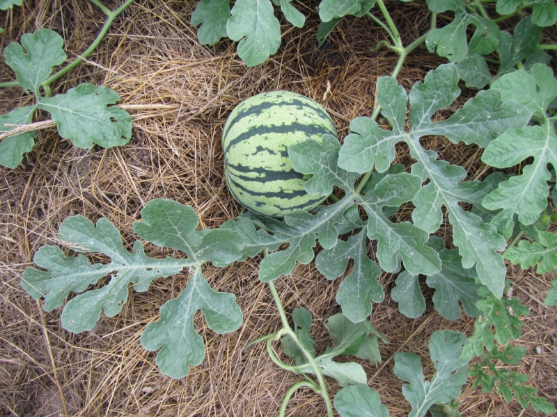 Après avoir planté dans les plates-bandes, les pastèques poussent lentement, car en quelques semaines, la plante laisse échapper une longue racine pivotante dans le sol. Le soin des plantes comprend également le moulage en une seule tige, à partir de laquelle un excellent fruit mûr est obtenu. Pour cela, enlevez toutes les tiges, sauf la principale.
