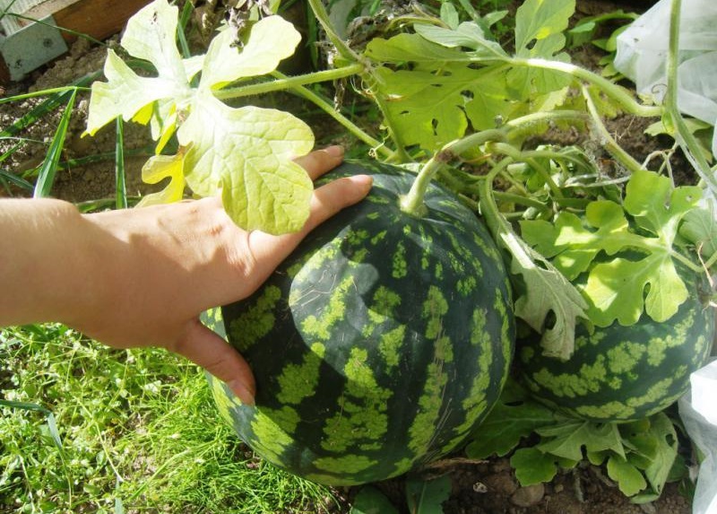 L'entretien des plantes plantées consiste en un arrosage régulier avec une fréquence de deux fois par semaine avec de l'eau décantée chauffée au soleil et une alimentation avec des engrais complexes solubles deux fois par mois. Si nécessaire, les pastèques poussant dans le sol sont pollinisées à l'aide d'une brosse. Il n'est pas nécessaire de les pincer.