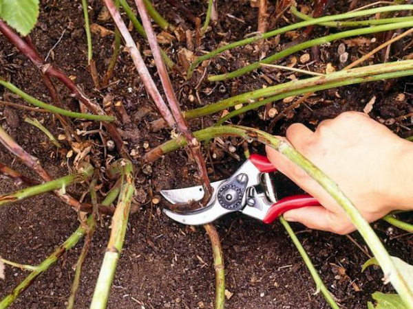 Les branches en croissance sont fixées sur des supports et, pour la commodité des soins ultérieurs, les pousses non fructifères sont dirigées dans l'autre sens, fixées séparément afin qu'elles n'interfèrent pas avec la récolte ultérieure. Et à l'automne, après la récolte, en prévision de l'hiver, les branches sur lesquelles la récolte a été récoltée sont complètement retirées. Mieux vaut les brûler. Les nouvelles pousses sont raccourcies d'un quart de leur longueur, attachées en grappes et soigneusement inclinées vers le sol afin qu'elles puissent se cacher complètement sous la neige.