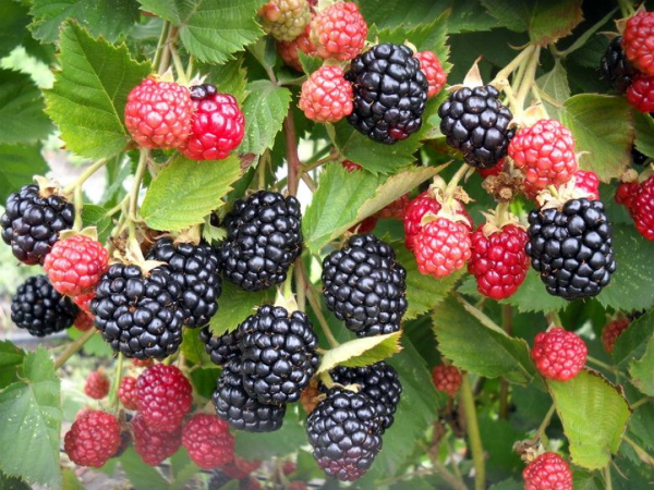 De début juillet à mi-août, un hybride assez nouveau et complètement merveilleux de mûres et de framboises "Buckingham Tayberry" plaît avec ses fruits. Ses longues baies rouges atteignent 8 cm de longueur et 15 g de poids, elles se distinguent par un arôme puissant, un goût riche avec une acidité prononcée.