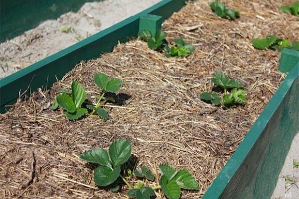 Il convient de rappeler que l'utilisation d'engrais contenant du chlore pour les fraises est inacceptable. Il est très bon de prendre soin de l'état du sol à l'aide d'humus, car en plus de la fertilisation, cela améliore également la structure du sol. Vous pouvez utiliser de l'engrais sous forme de granulés de fumier de poulet ou d'autres types de préparations biologiques. De nombreux jardiniers aiment le complexe fertilisant éprouvé "Agricola". Et les plus expérimentés utilisent souvent des infusions d'herbes fermentées d'une manière spéciale - à partir des parties vertes de la cime de toute plante, en y ajoutant des engrais azotés. À l'aide d'une telle alimentation, vous pouvez neutraliser l'acidité du sol. Lorsque tous les engrais nécessaires ont été appliqués, vous devez les enfouir dans le sol et pailler le jardin avec de la tourbe.