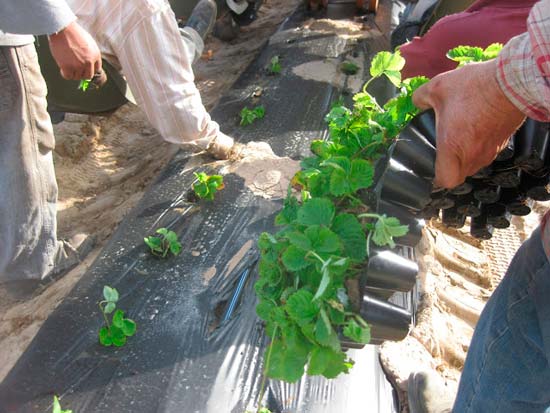 Caractéristiques de la plantation de fraises sous un film noir. Vous pouvez entendre les règles de base de l'atterrissage.