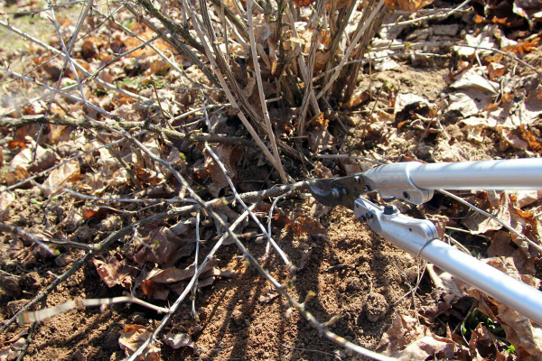 À l'automne, les soins du buisson commencent après la récolte et la chute des feuilles. Vous devez examiner attentivement le buisson, en notant les branches vieilles ou fanées. Cela peut être déterminé par l'état de l'écorce et sa couleur - les vieilles branches sont presque entièrement noires. Notez également les branches concurrentes et celles qui poussent trop près du sol.