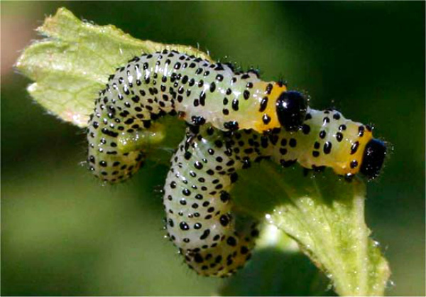 Les tenthrèdes à pattes pâles et jaunes pondent leurs œufs directement dans le tissu foliaire, les larves mangent les feuilles, ne laissant que des nervures. Pendant l'été, deux générations de ces ravageurs sont éliminées, et la seconde est particulièrement nuisible. Ils hibernent dans les couches supérieures du sol sous les buissons. La meilleure prévention consiste à ameublir la terre, à creuser en automne, à nettoyer les résidus végétaux. Les décoctions de tabac et d'herbes ou d'insecticides contre les insectes rongeurs de feuilles aident également contre les scieurs.