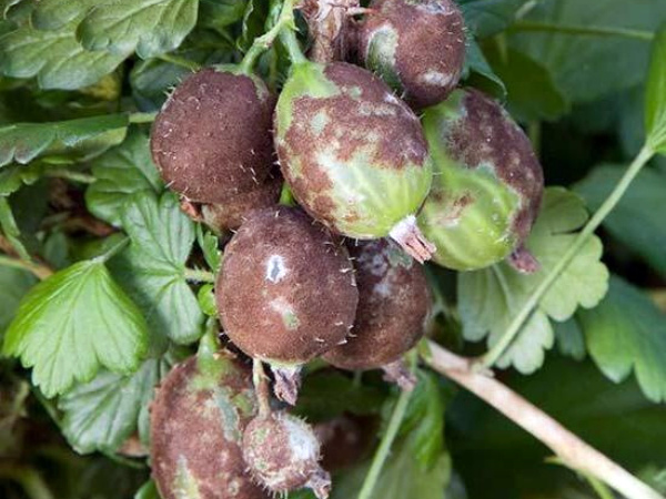 L'oïdium américain, ou spheroteka, recouvre les feuilles et les pousses d'une floraison blanche dès le début du printemps. Les spores recouvrent très rapidement tout le buisson, les ovaires commencent à tomber, les feuilles s'enroulent et les pousses se déforment. Le buisson malade devient comme un morceau de feutre brun. Si la maladie a atteint un tel stade, il est inutile de se battre. Le buisson doit être déterré et brûlé, et le sol alentour doit être désinfecté. Il n'est possible de combattre le spheroteka qu'au stade initial, et il vaut mieux, bien sûr, l'empêcher.