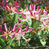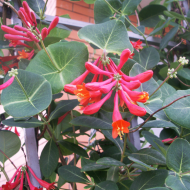 - Chèvrefeuille. Une liane décorative de 4–5 m de long, dégage un arôme puissant pendant la période de floraison. Les baies sont orange vif, toxiques.