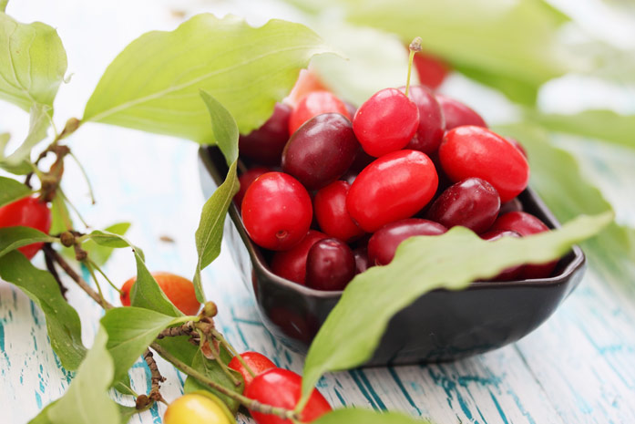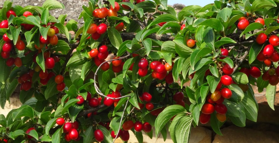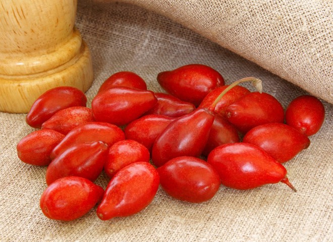 L'écorce a naturellement une couleur grise, brune ou bronze caractéristique ; avec le temps, elle a tendance à s'écailler. Les fruits des baies appréciés de nombreux jardiniers et de notre pays sont généralement des drupes ne dépassant pas 6 cm de long et atteignant 2, 6 cm de diamètre. A maturité, ils deviennent rouges. Moins juteux que les variétés réelles ou médicinales. Ils peuvent être utilisés aussi bien frais qu'après transformation.