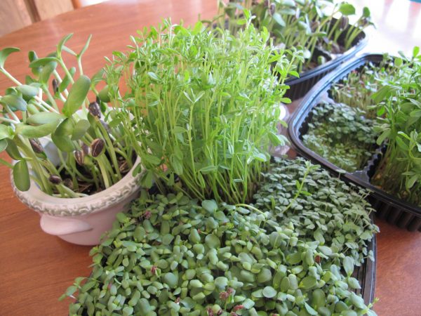 Le lendemain, le film doit être retiré, les cultures arrosées, puis refermées. Après quelques jours, des pousses apparaîtront, elles peuvent être éclaircies de sorte qu'il y ait une distance de 1 à 2 cm entre les pousses.Ensuite, le pot peut être ouvert, transféré dans une pièce plus chaude et plus lumineuse, la température ne doit pas être supérieur à +15 degrés. Au cours de la semaine prochaine (environ), vous devez vous assurer que de l'air frais pénètre dans la pièce, arroser les plants, ameublir le sol, s'il se compacte, tourner le pot à 180 degrés par rapport au soleil. Lorsque les plantes atteignent une hauteur de 7 à 10 cm, et cela se produit généralement 2 semaines après le semis, vous pouvez couper la récolte avec un couteau bien aiguisé ou des ciseaux et manger. Vous devez couper exactement autant que possible pour la nourriture immédiatement, vous n'avez pas besoin de la stocker.