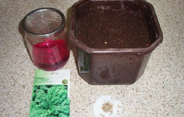 Pour semer des épinards avec des graines sur le rebord de la fenêtre, il est nécessaire de préparer la graine, le mélange de sol et les récipients dans lesquels la verdure sera cultivée. La préparation des graines consiste à les faire tremper pendant une journée dans de l'eau tiède, puis pendant quelques heures supplémentaires dans une solution de permanganate de potassium - cette procédure est nécessaire pour désinfecter le matériel.